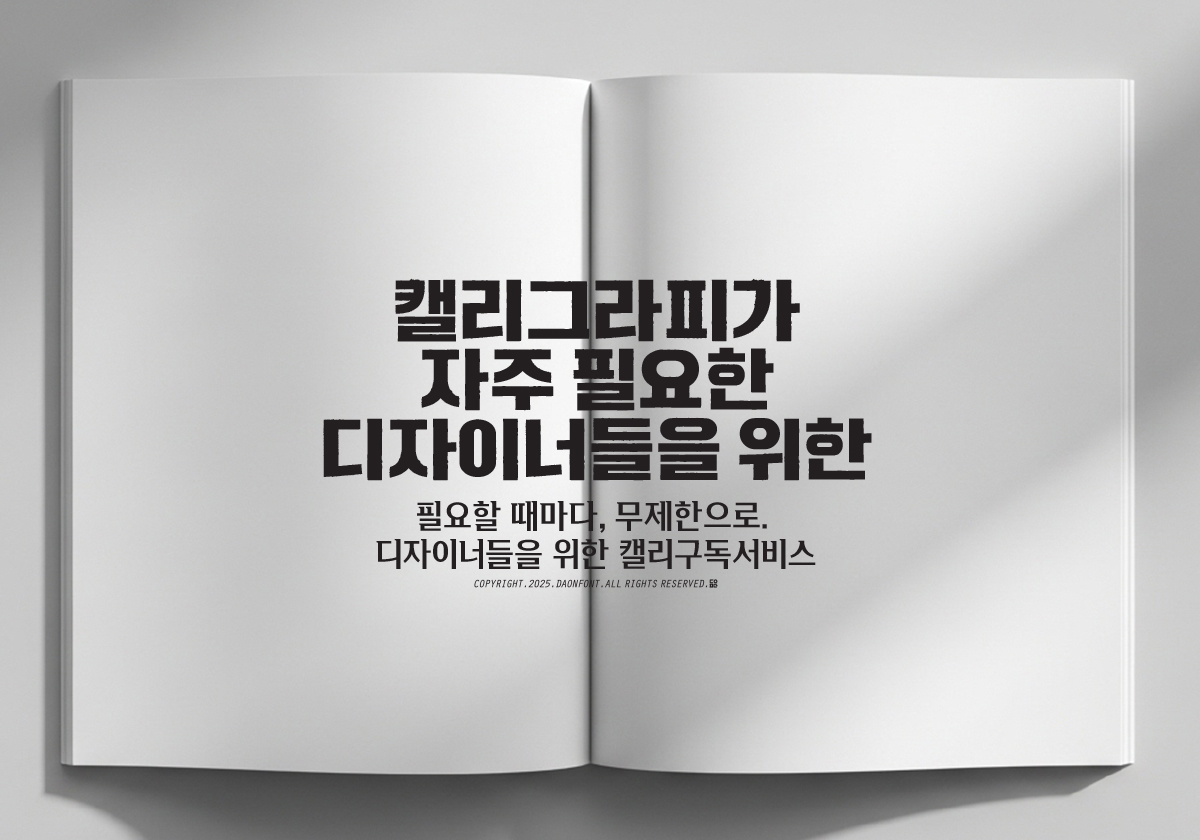 다온폰트의 캘리구독서비스는 그런 디자이너분들을 위해 준비된 무제한 캘리그라피 제작 구독 서비스입니다.
