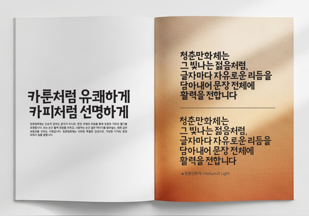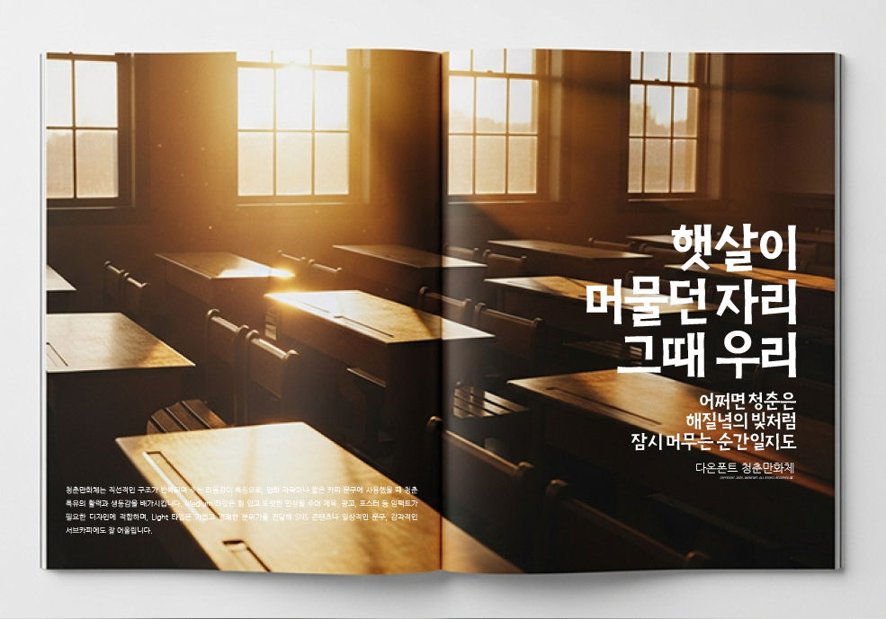 다온폰트의 새로운 서체, 청춘만화체 2종(Medium · Light)이 출시되었습니다.