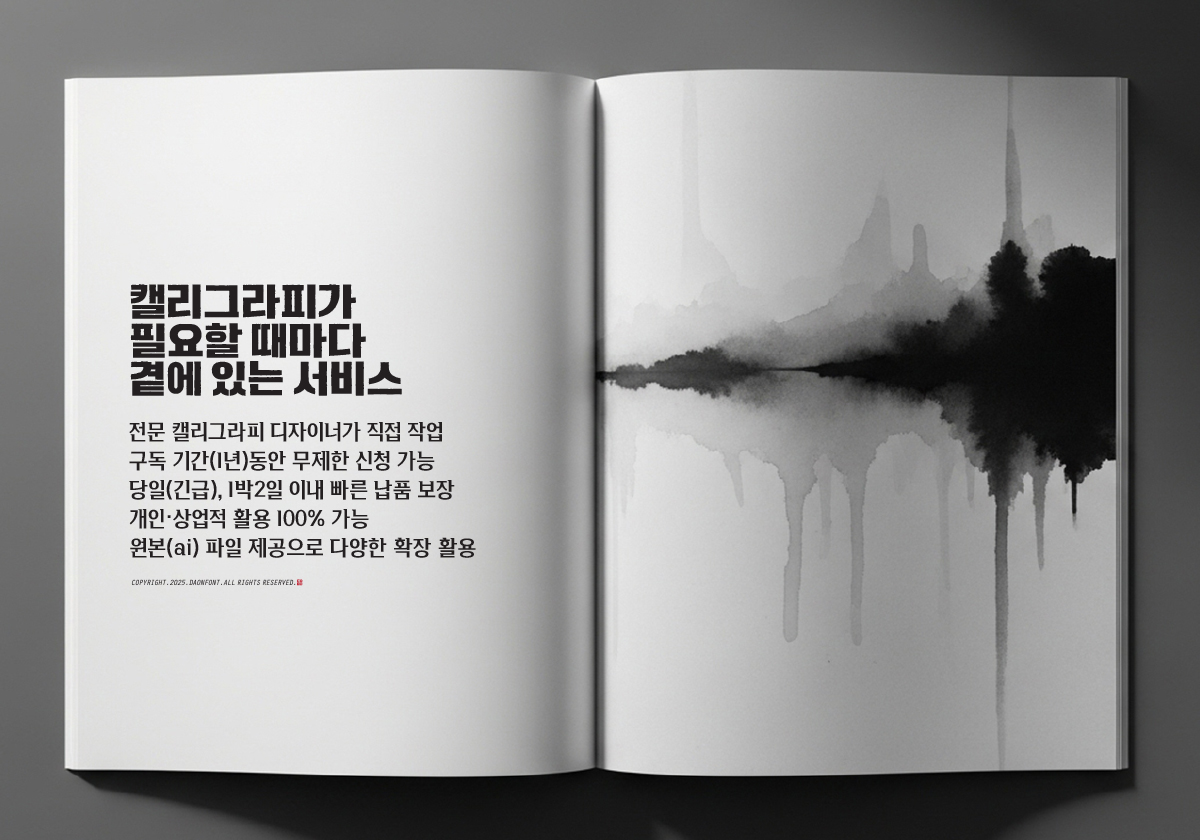 다온폰트의 캘리구독서비스는 그런 디자이너분들을 위해 준비된 무제한 캘리그라피 제작 구독 서비스입니다.