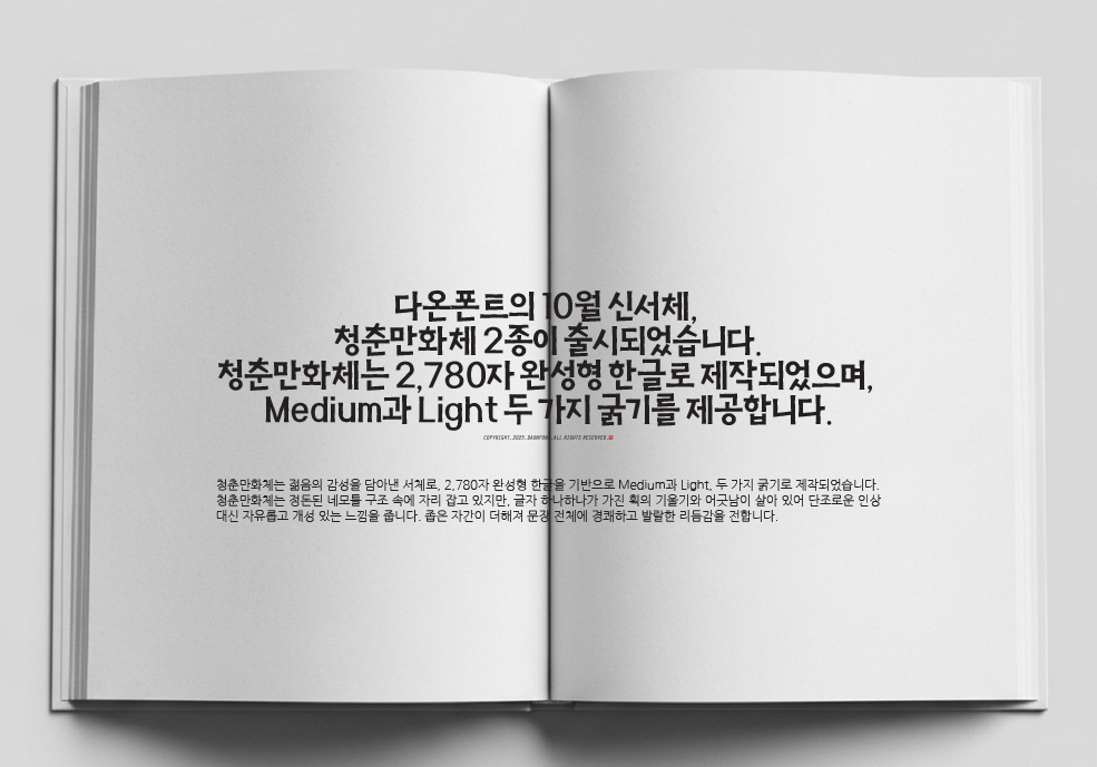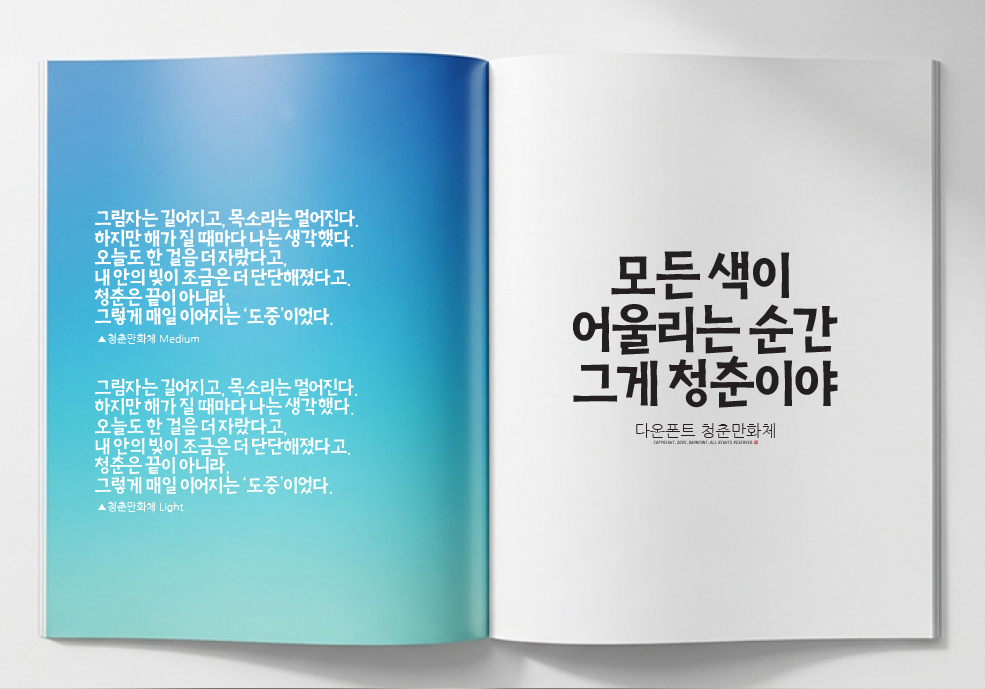 다온폰트의 새로운 서체, 청춘만화체 2종(Medium · Light)이 출시되었습니다.