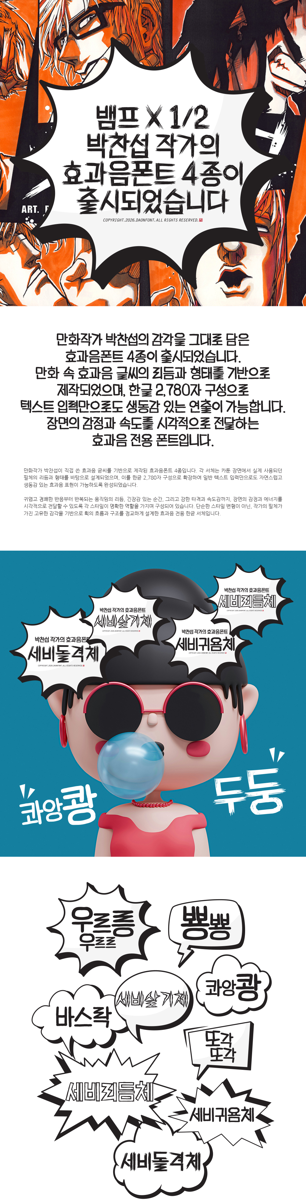 다온폰트 4월 신서체 "박찬섭 작가의 효과음 폰트" 4종 출시