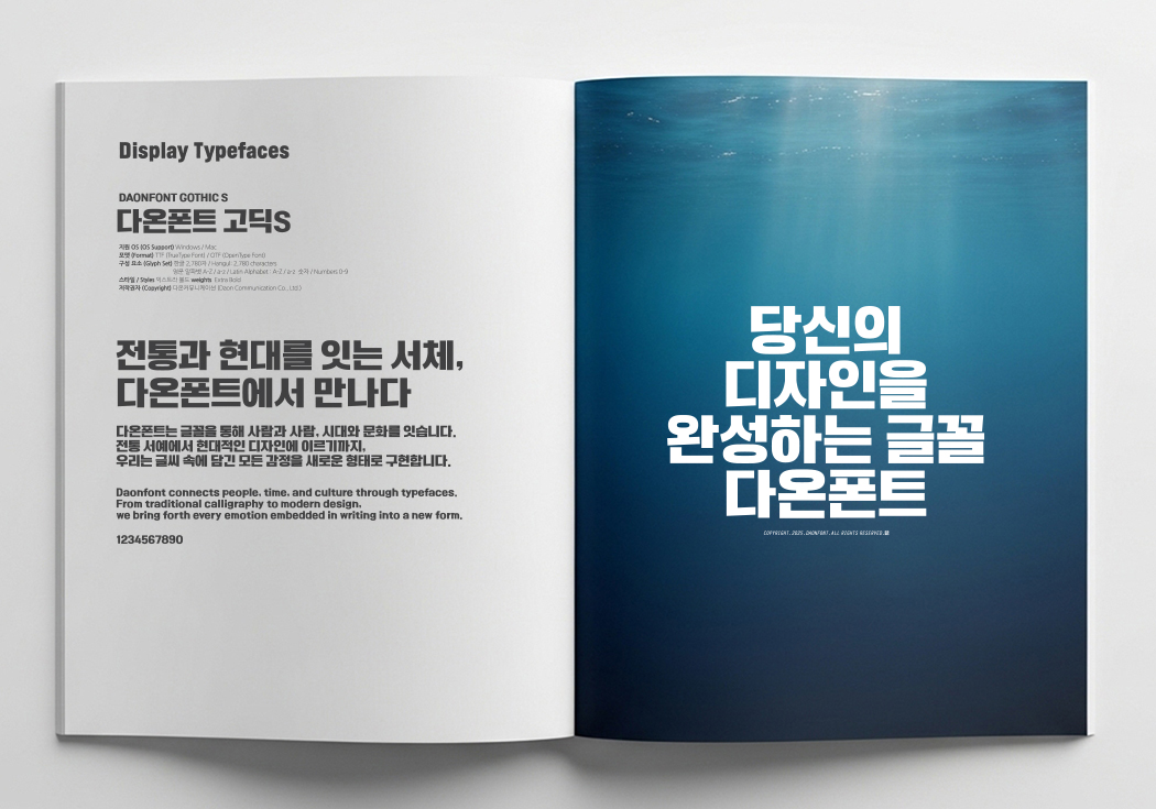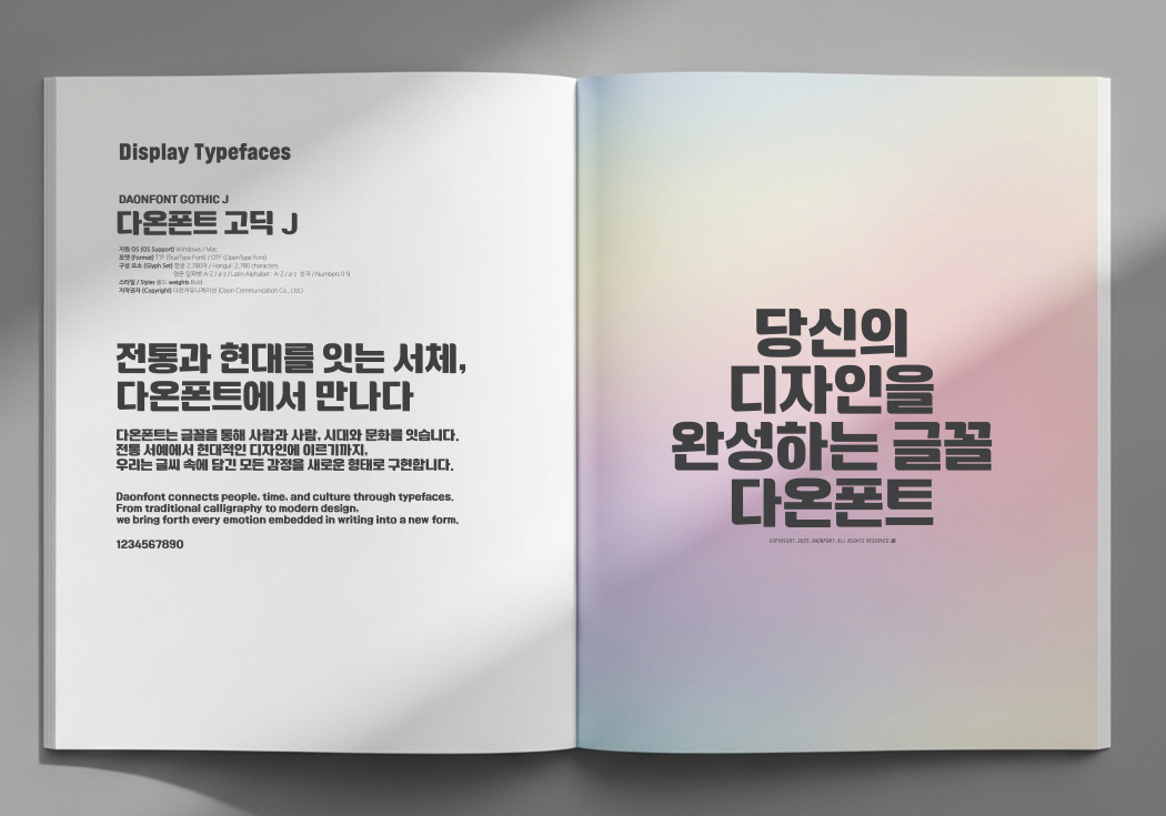 이번 ‘2025 다온폰트 글꼴집’은 다온폰트의 주요 서체를 한눈에 살펴볼 수 있는 자료로, 브랜딩, 출판, 영상, 웹디자인 등 다양한 분야에서 활용할 수 있는 폰트 레퍼런스로 제작되었습니다.